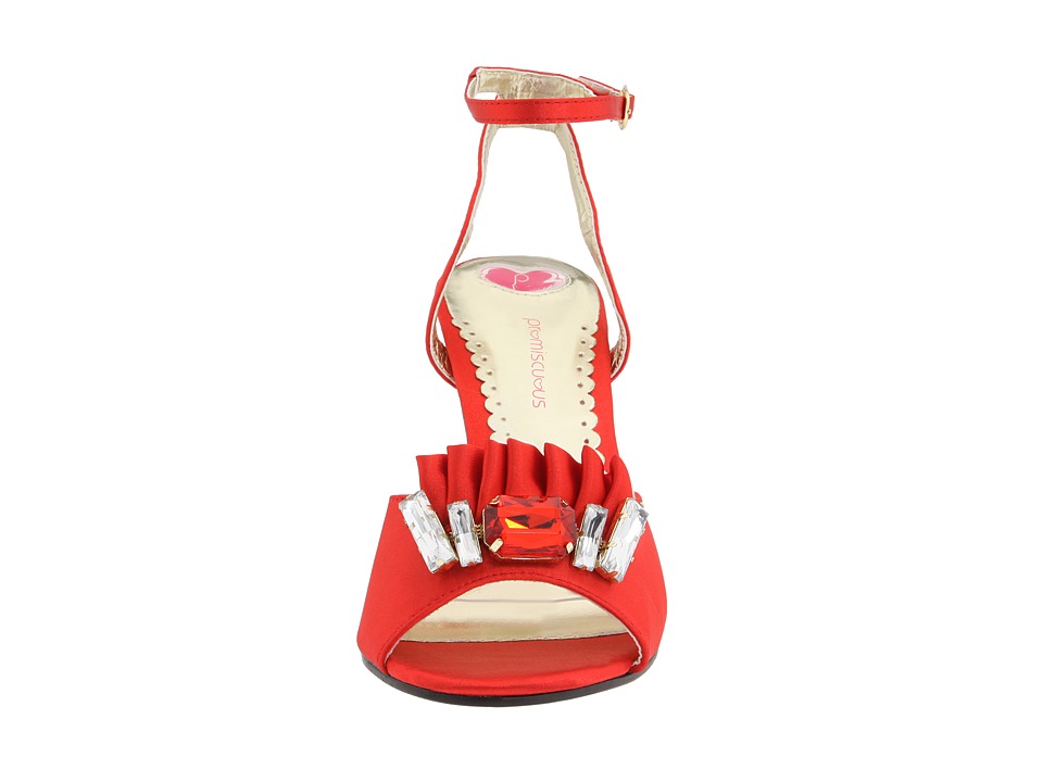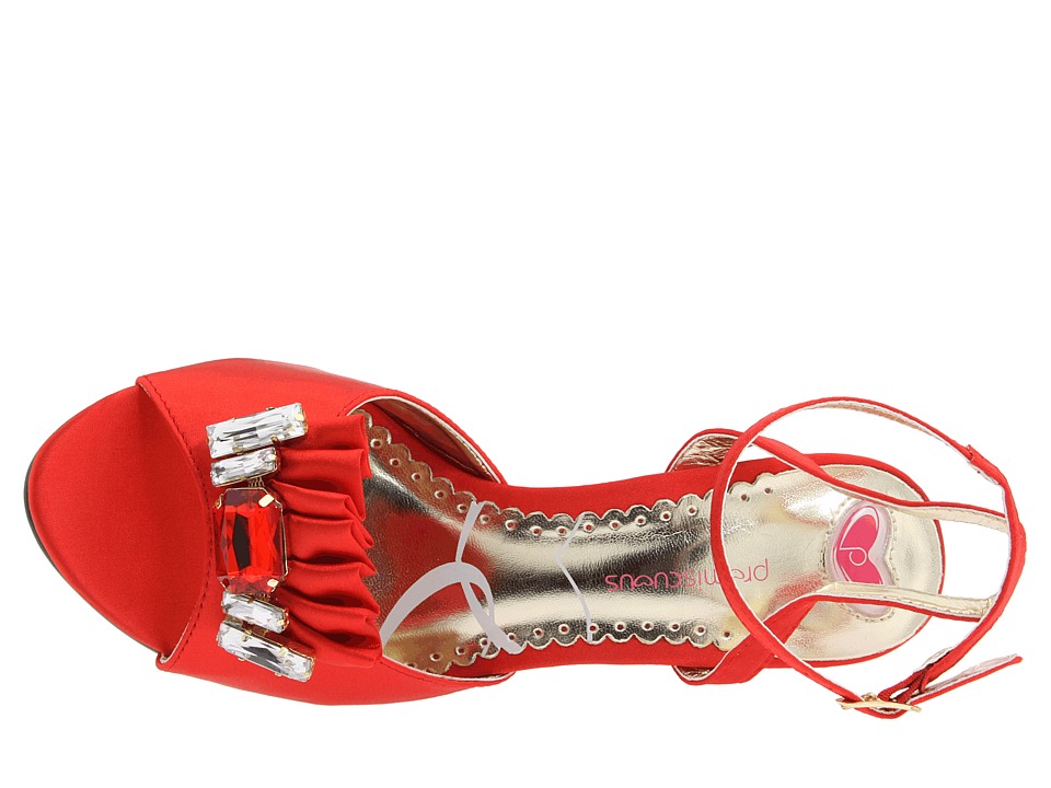 Crowd pleasing sandal with ruffles and gems that draw the eye.