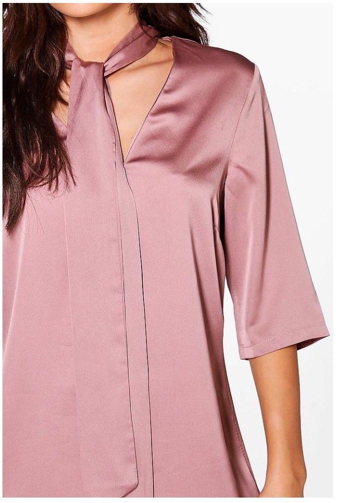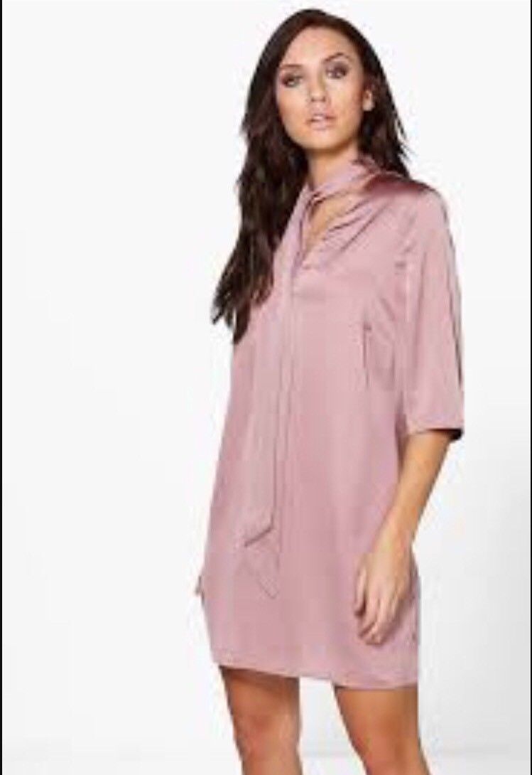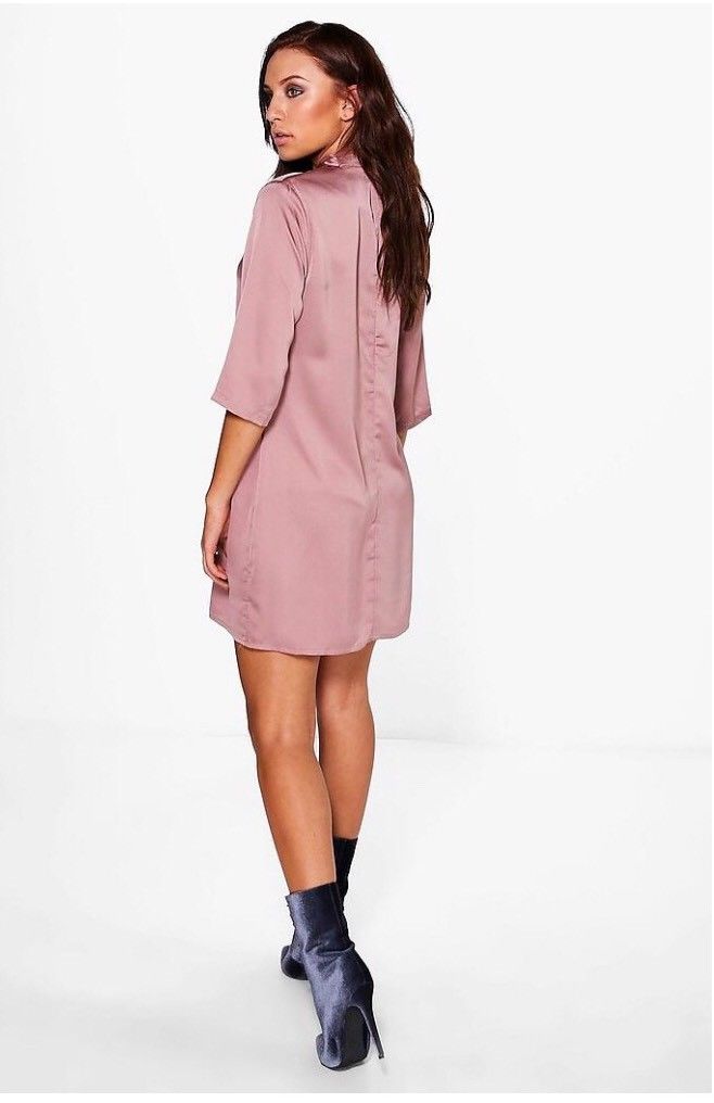 BOOHOO SURI SATIN TIE NECK SHIFT DRESS ROSE PINK 4