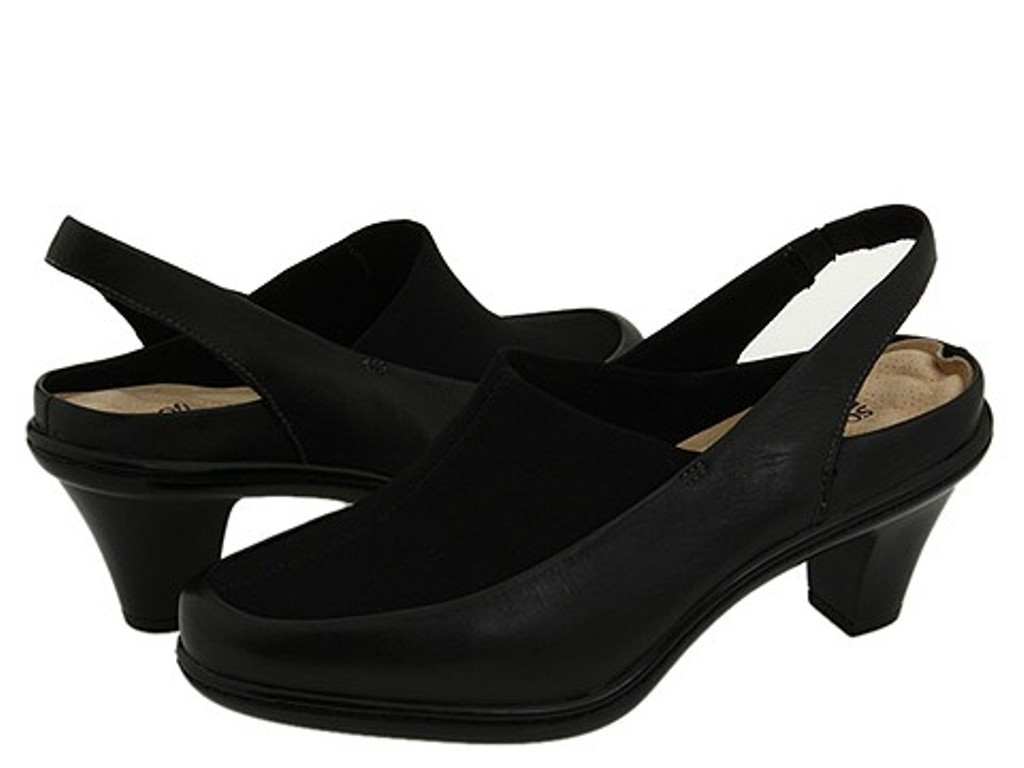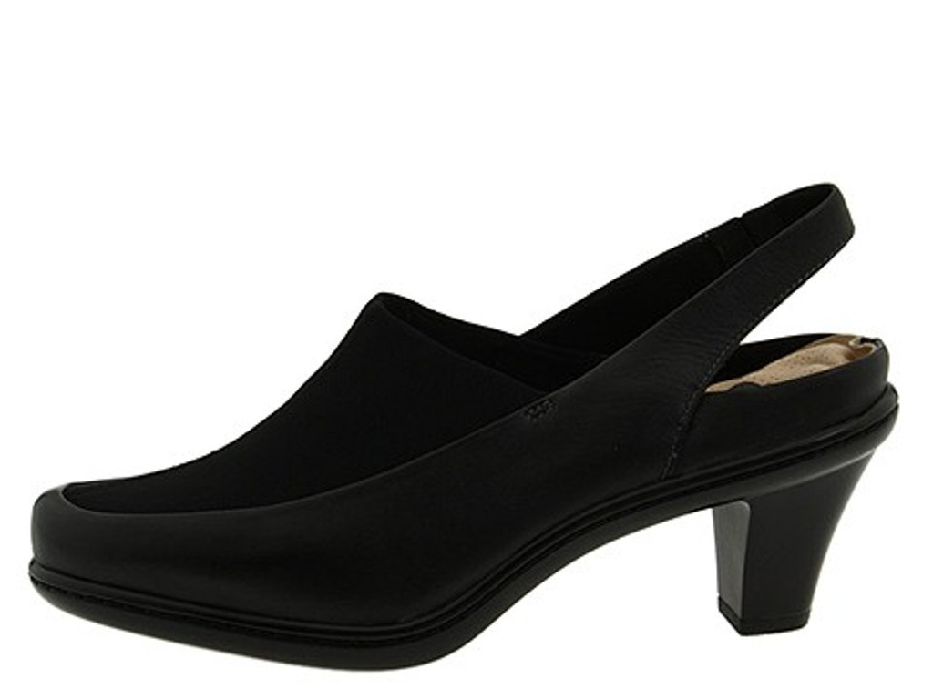| Product Information: Attractive sling design delivers comfort with every step. Combination leather and stretch fabric construction is ideal for hard to fit feet. Ankle strap uses hidden elastic gore for added flexibility. Moisture-wicking FABRITEK™ lining is color matched to the upper. Removable "Eggcrate" footbed with generous padding invigorates feet. Sculpted block heel is married to a dual density unit bottom. Genuine rubber outsole absorbs shock and provides traction. Product measurements were taken using size 6. Please note that measurements may vary by size |