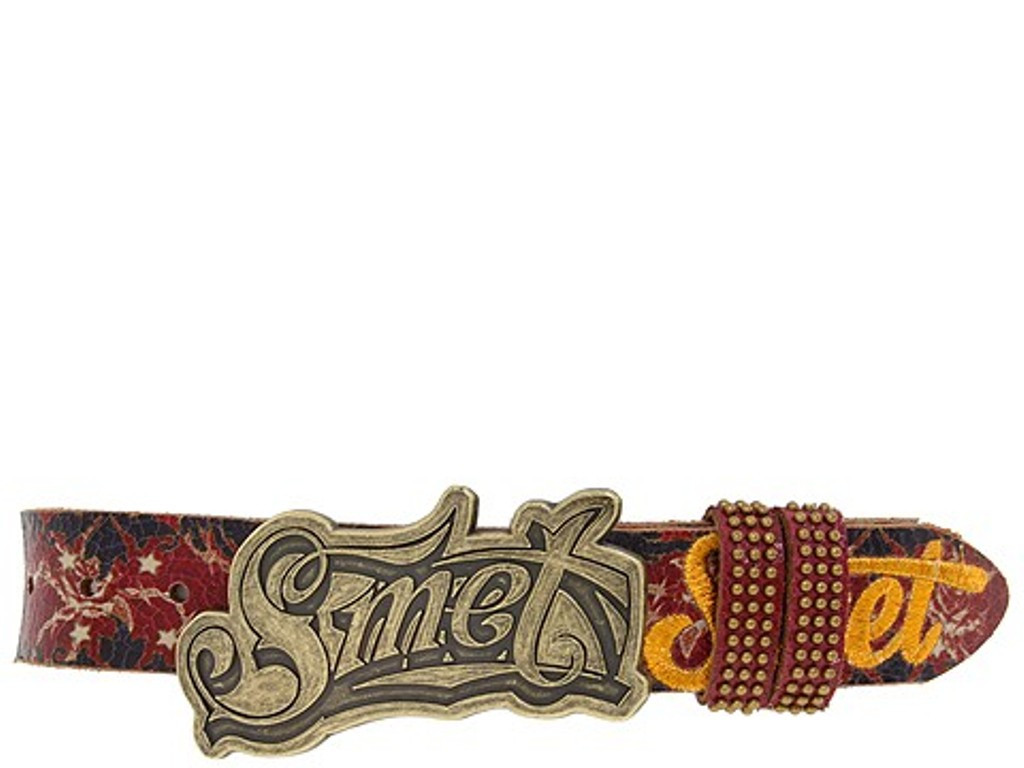 Product Information: Color: Merlot Size: MD Width: Apparel You're cute, but tough. Satisfy both sides with this strong and sexy belt from Smet. Smet logo belt buckle. Stud embellished belt with embroidered Smet logo and screenprinted Smet logo. 1.5" belt width. Women's size S 27" - 30" Women's size M 31" - 34" Women's size L 35" - 37" Made of leather. Imported. |