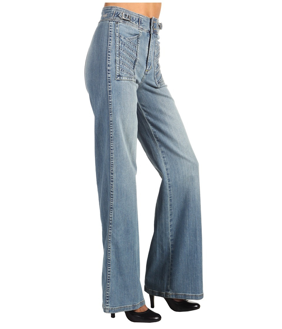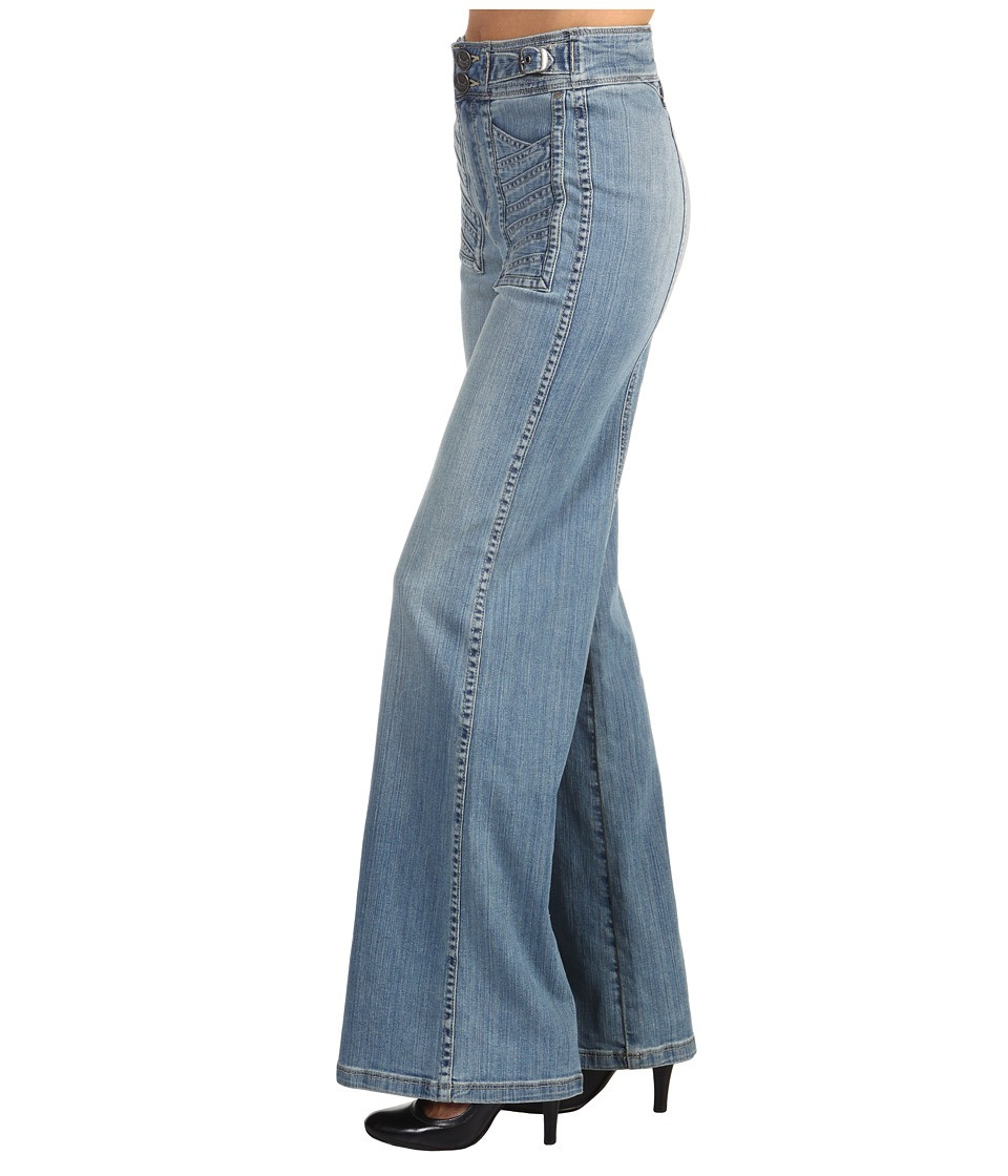 Product Information: Your search for chic and unique jeans is now over. High-rise jeans. Flare legs. Buckled tab waistband. Panel front pockets with an overlap design. Two-button closure with zip fly. 34" inseam. 12" front rise. 16" back rise. 24" leg opening. 99% cotton, 1% spandex. Machine wash cold, tumble dry low. Product measurements were taken using size 26. Please note that measurements may vary by size. |