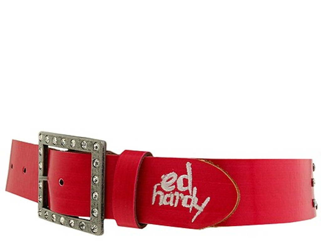 Product Information: Burn the cuteness coal and look all steamy when you rock n' roll in this Ed Hardy® belt. Rhinestone embellished single prong belt buckle. Embroidered Ed Hardy® logo and stud embellished "Rock and Roll" text. 1.5" belt width. Women's size S 27" - 30" Women's size M 31" - 34" Women's size L 35" - 37" Made of leather. Imported. Product measurements were taken using size L. Please note that measurements may vary by size. Ed Hardy |